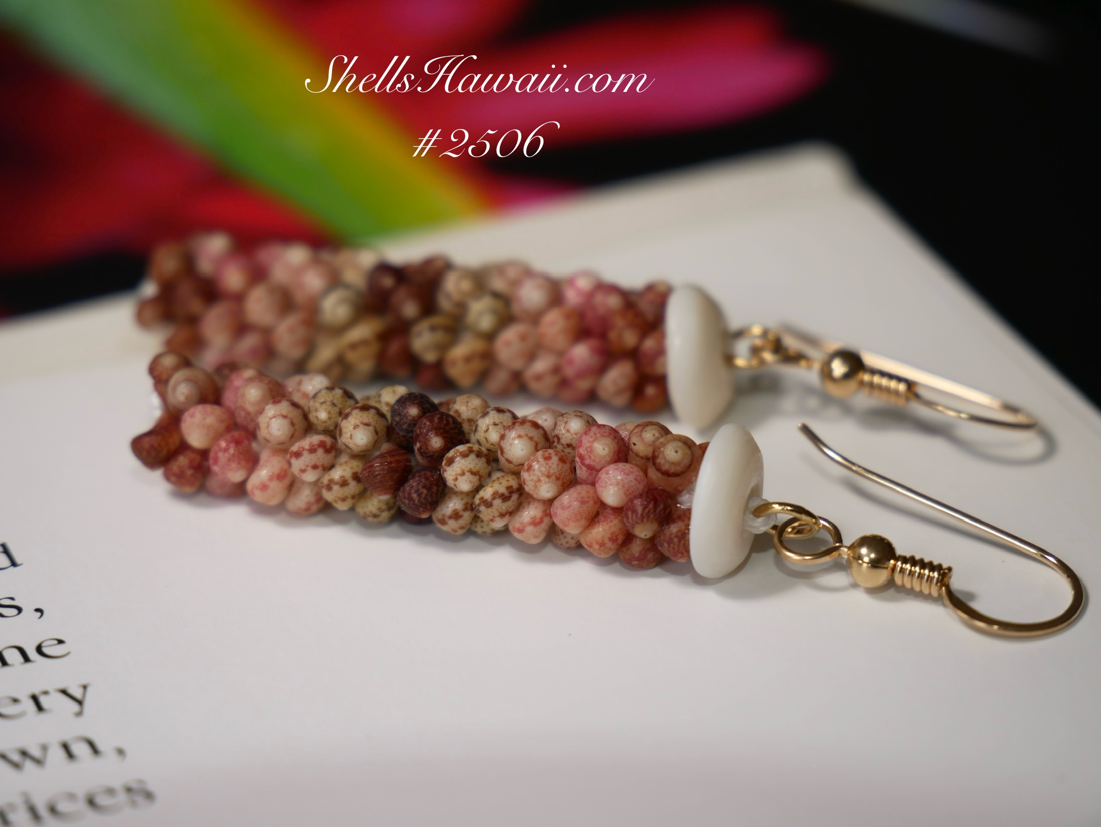 This is Kahelelani peopoe style shell earrings. This earrings made of burgundy, natural brown, green, dark burgundy and light pink Kahelelani shells. This earring is matte finish.