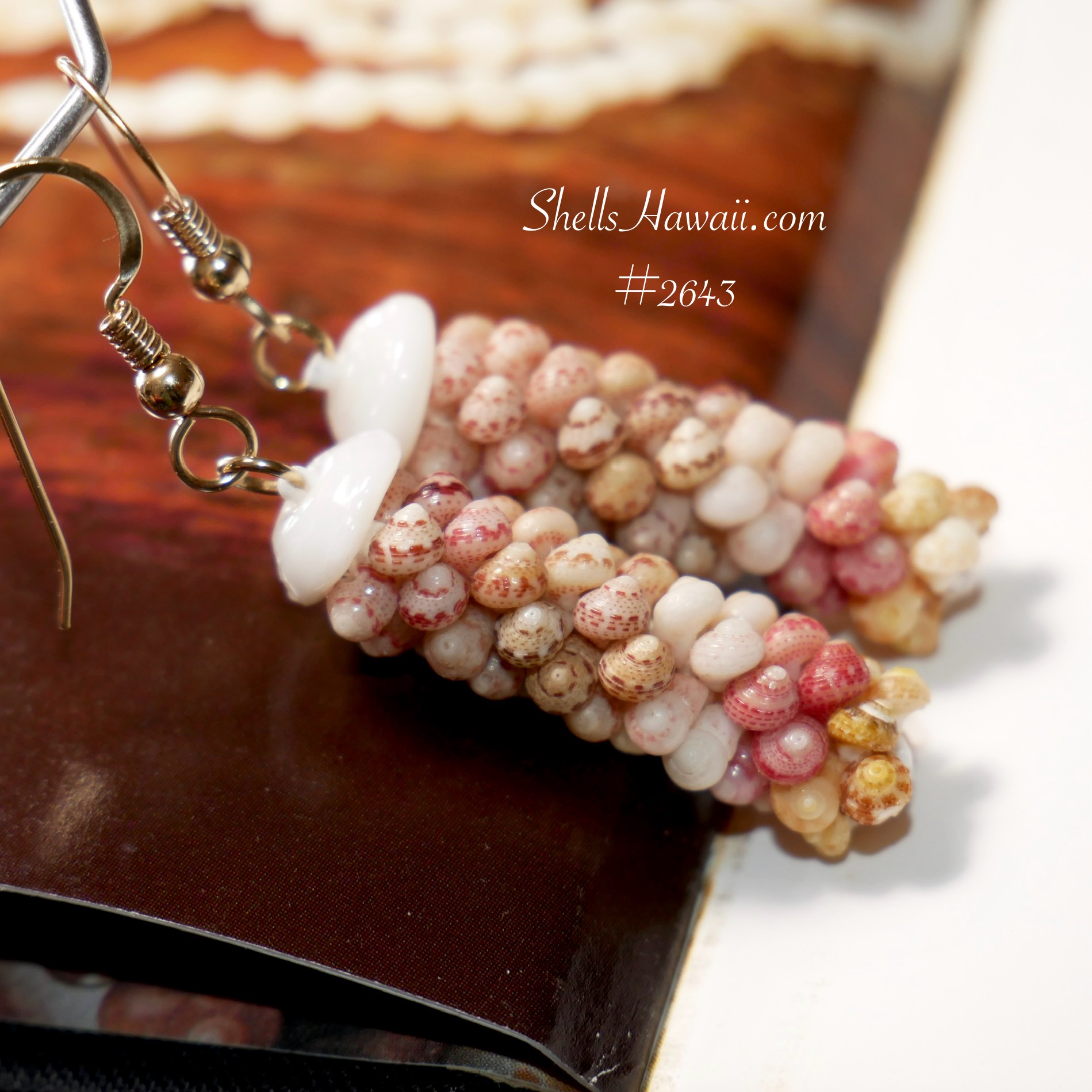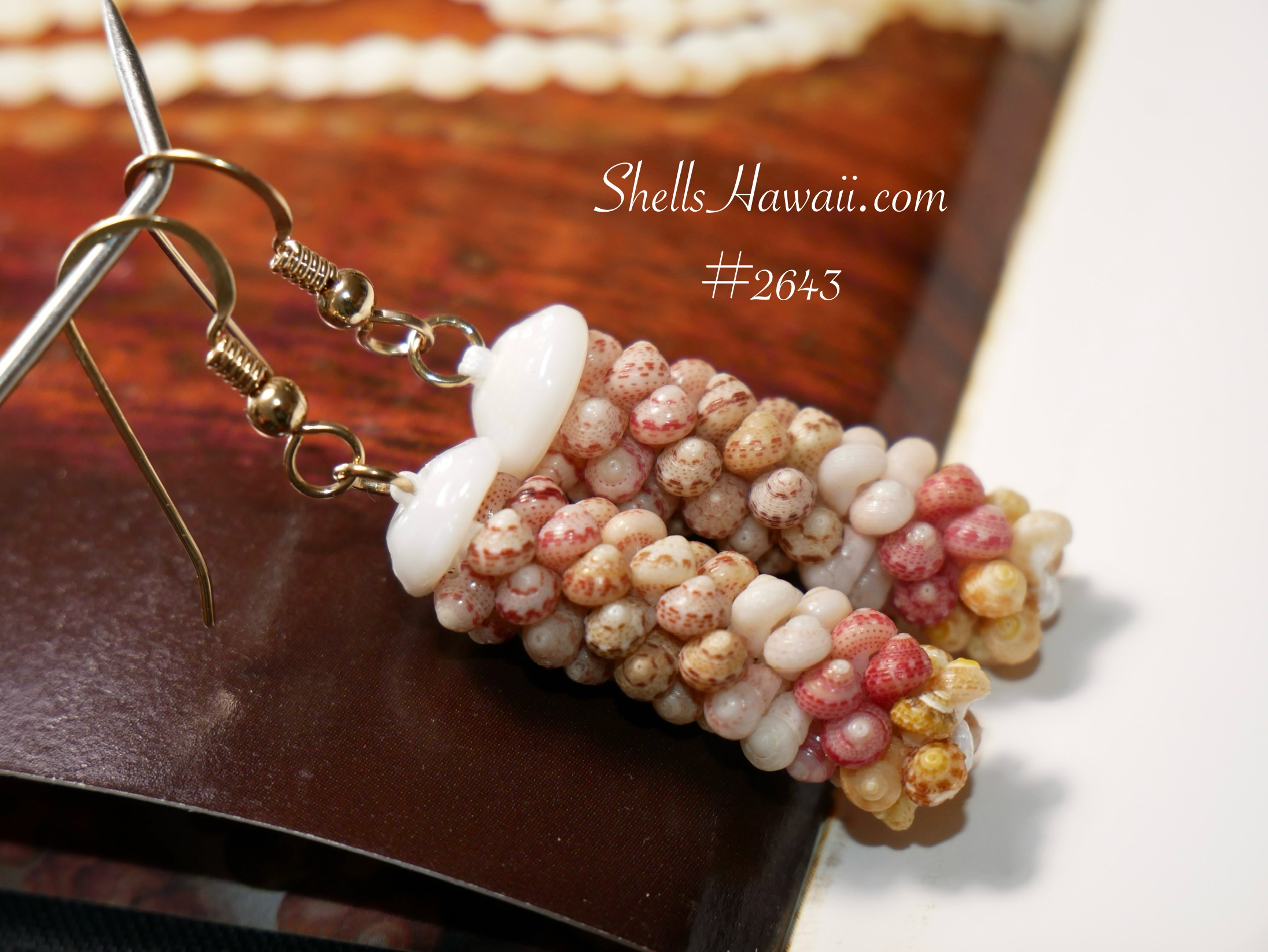 1 1/4" Genuine Niʻihau Shell Earrings – 4-Strand Kahelelani Poepoe Tied Style Hawaiian Jewelry #2643