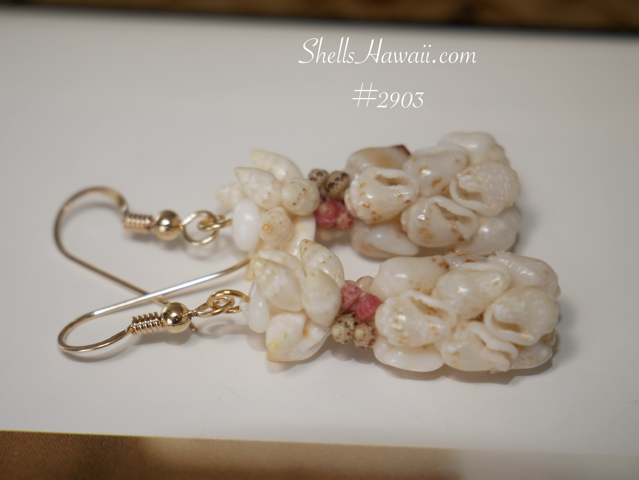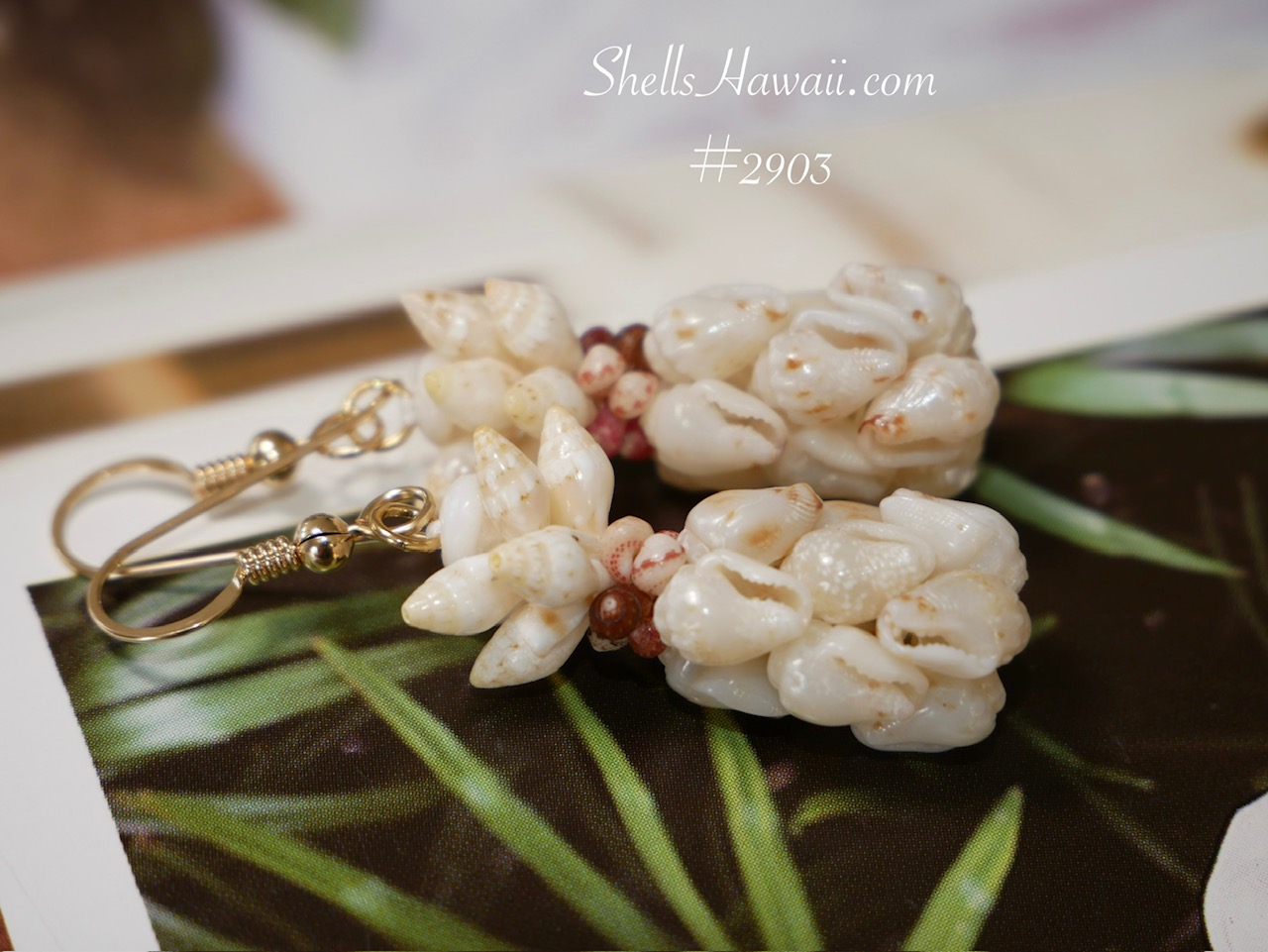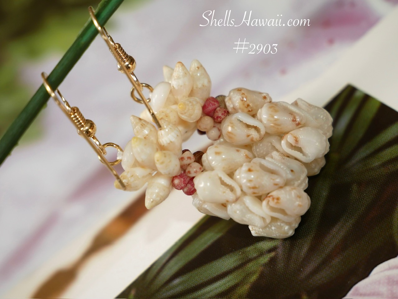 These handcrafted Hawaiian pineapple style shell earrings are created using a soft and natural blend of Niʻihau shells, bringing together a balanced and lively island feel. The off-white Momi shells carry a gentle light blue undertone, paired with off-white Laiki shells with a slight yellow warmth, while the mix of Kahelelani accents adds depth and variation to the design.