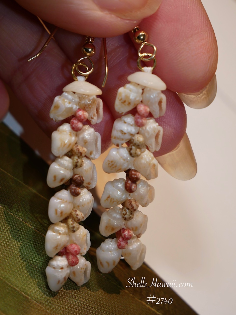 • Kahelelani shell color: Pink flower (ʻĀkala Pua), green (ʻŌmaʻomaʻo), and brown (Mākuʻe) accent shells