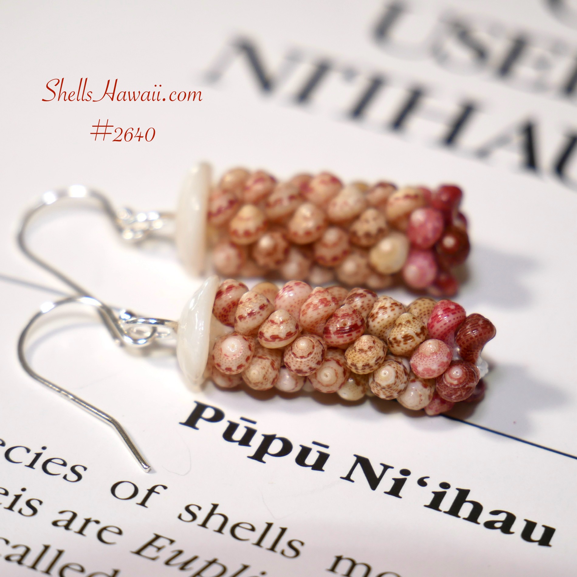 1" Genuine Niʻihau Shell Earrings – 4-Strand Kahelelani Poepoe Tied Style Hawaiian Jewelry #2640