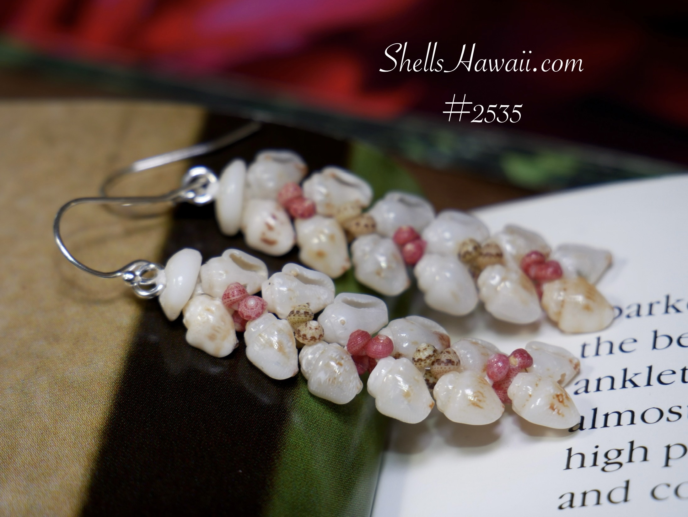 Shells: Off-white/yellow/blue Momi with pink flower, red, and green Kahelelani accents