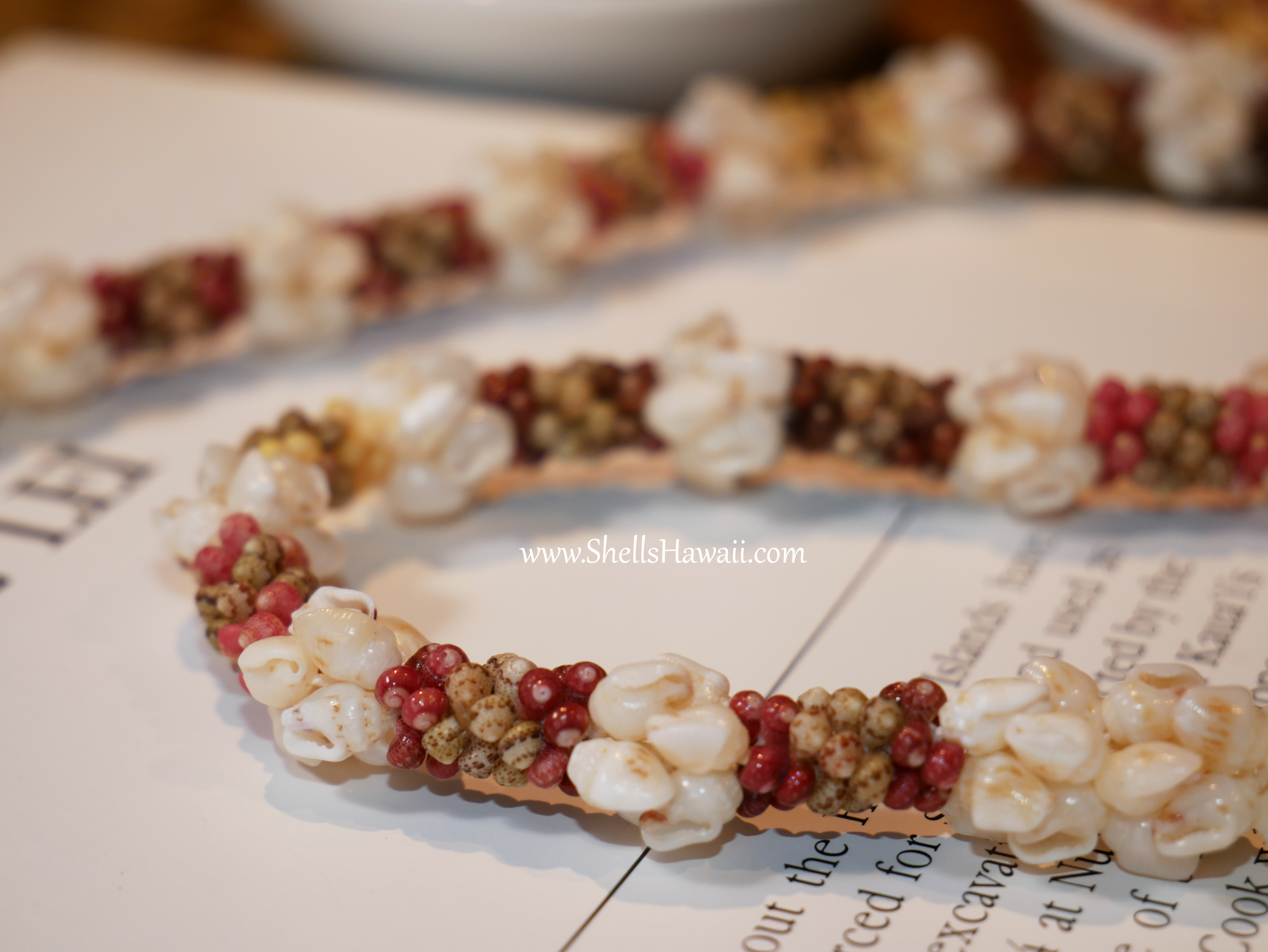 The term Kipona refers to a lei that uses more than one type of shell in a single piece, bringing together different textures and natural colors to create a rich, multidimensional design. The double-double variation adds extra fullness, giving the lei a soft, flowing structure with traditional Hawaiian elegance. I will be sharing more about the Kipona style—what makes it special and how it’s created—in an upcoming ShellsHawaii blog.