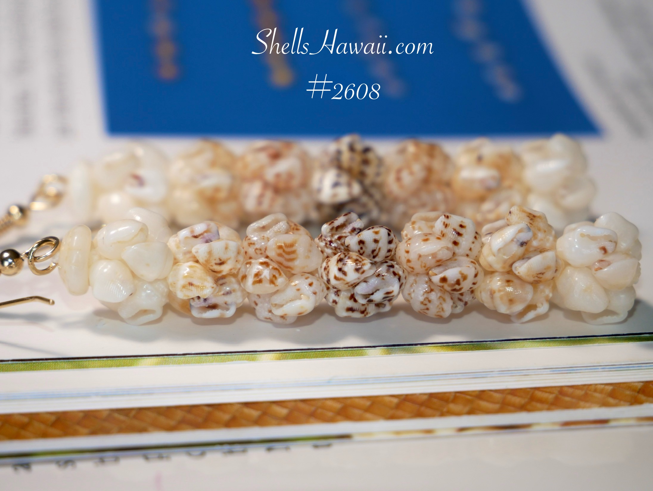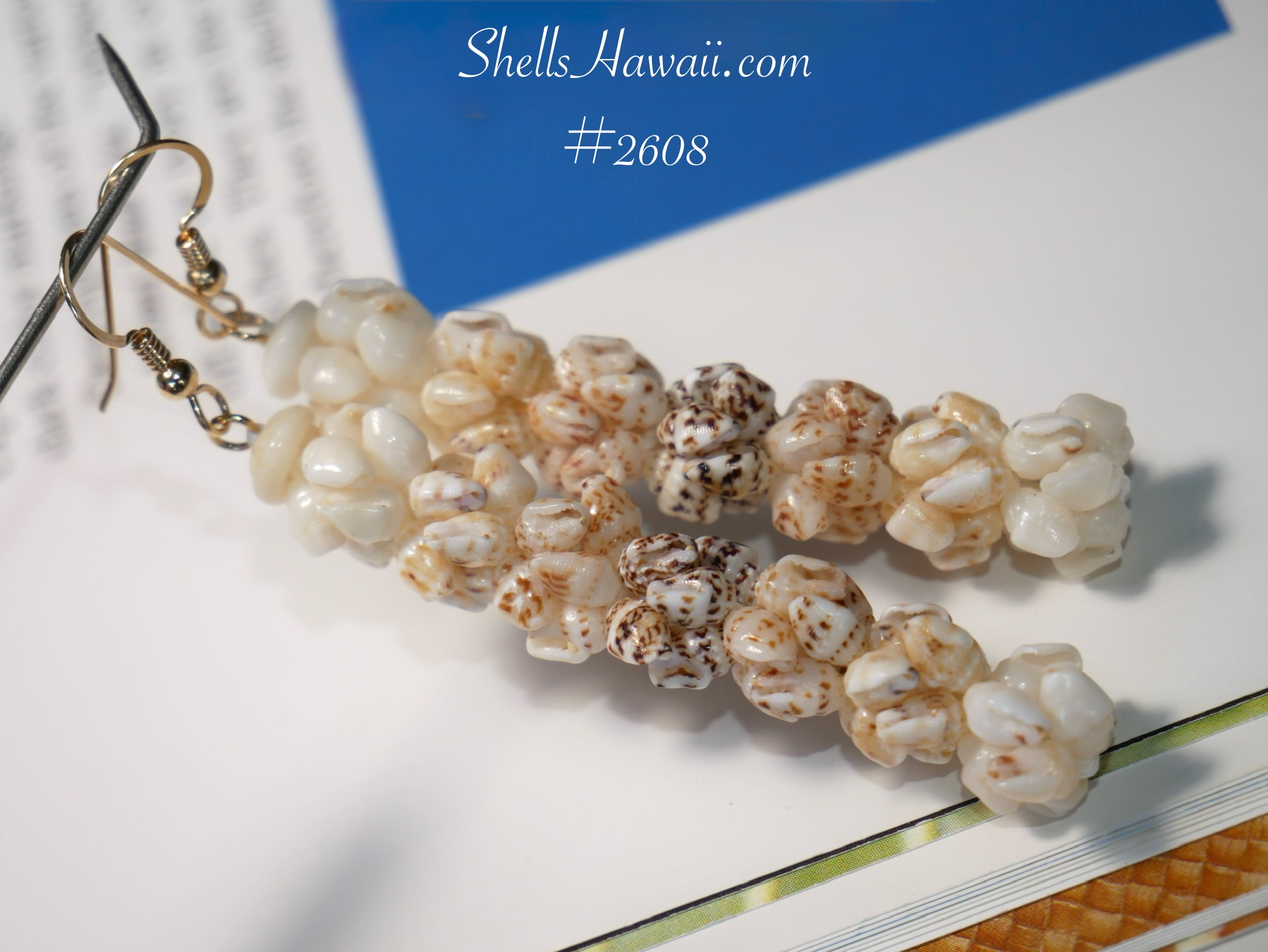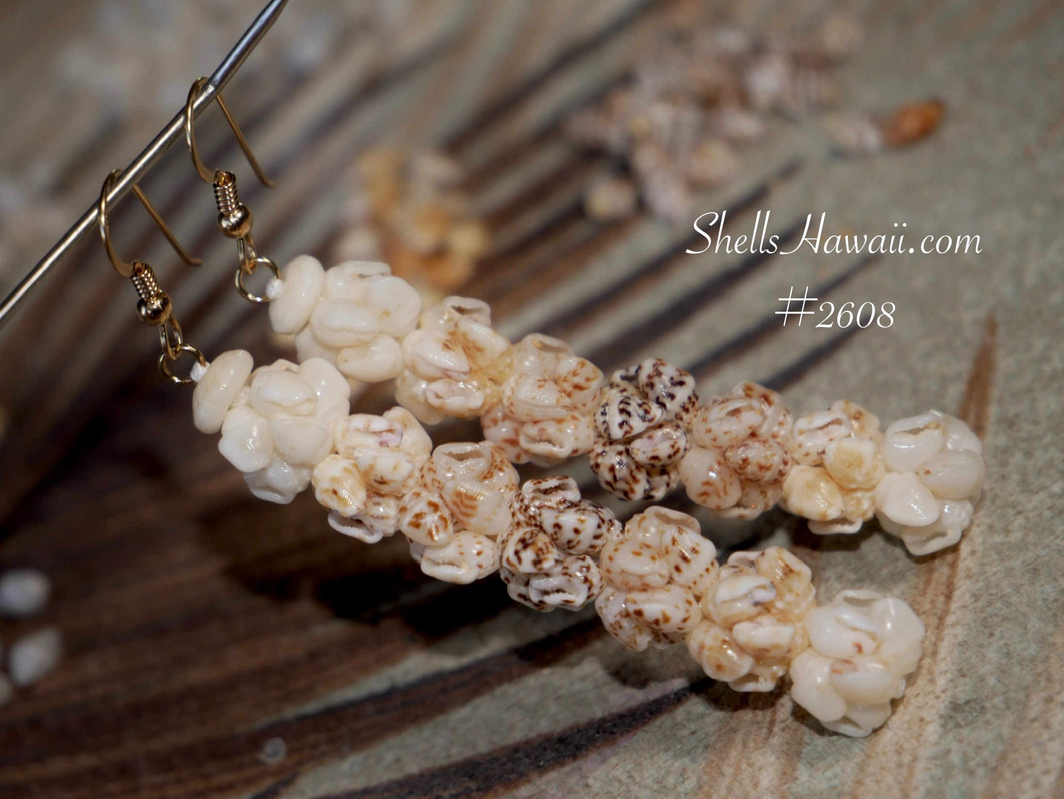 At 2.5 inches long and about 3/8" thick, these 貝殻ピアス are lightweight and elegant, designed to flow gracefully when worn. The Crown Flower style adds volume and dimension, making them stand out beautifully for both casual and formal occasions. Niʻihau shell jewelry (ハワイアンジュエリー) is rare and timeless, and this striking pair celebrates the uniqueness of spotted and solid-colored shells.