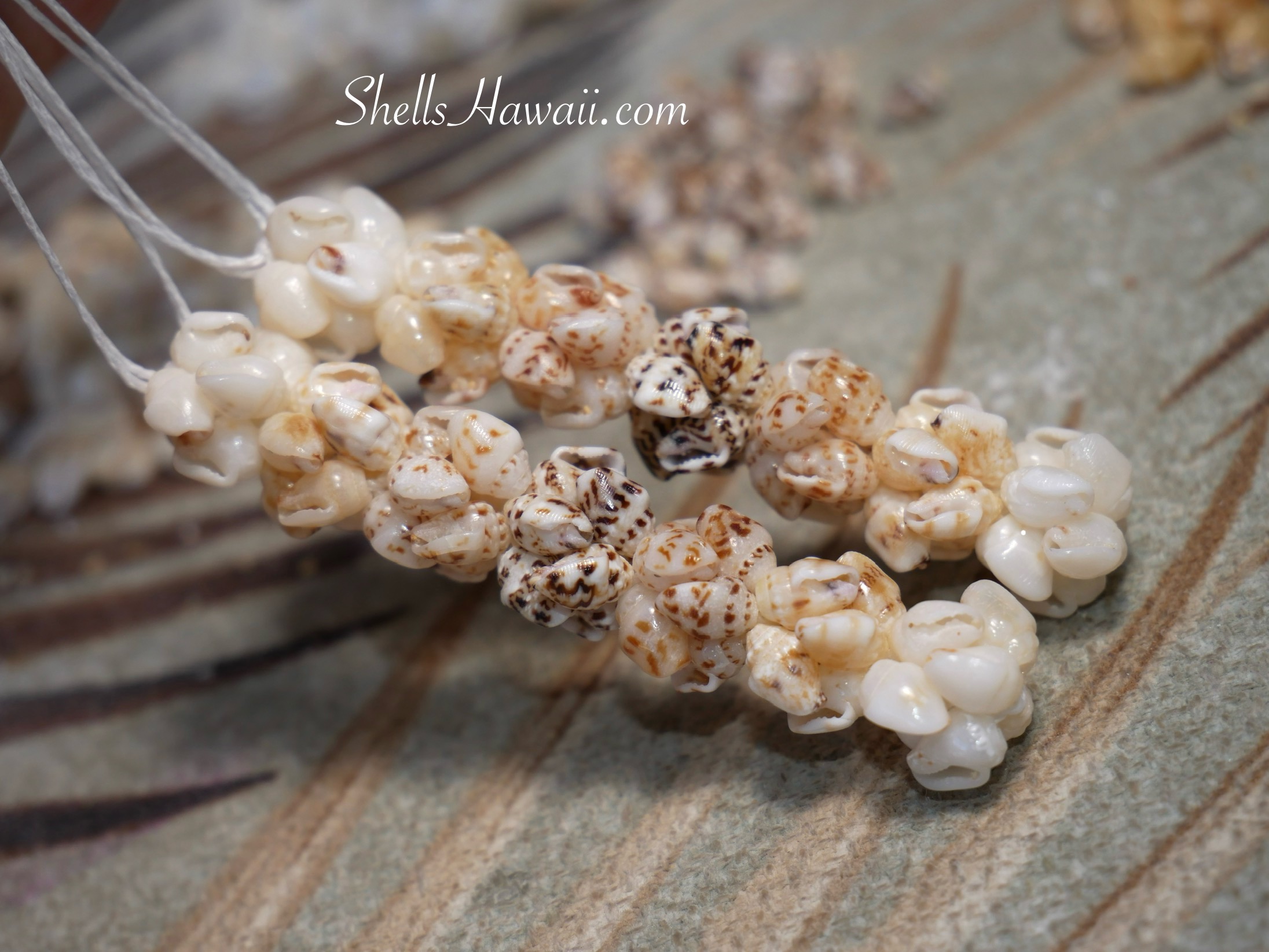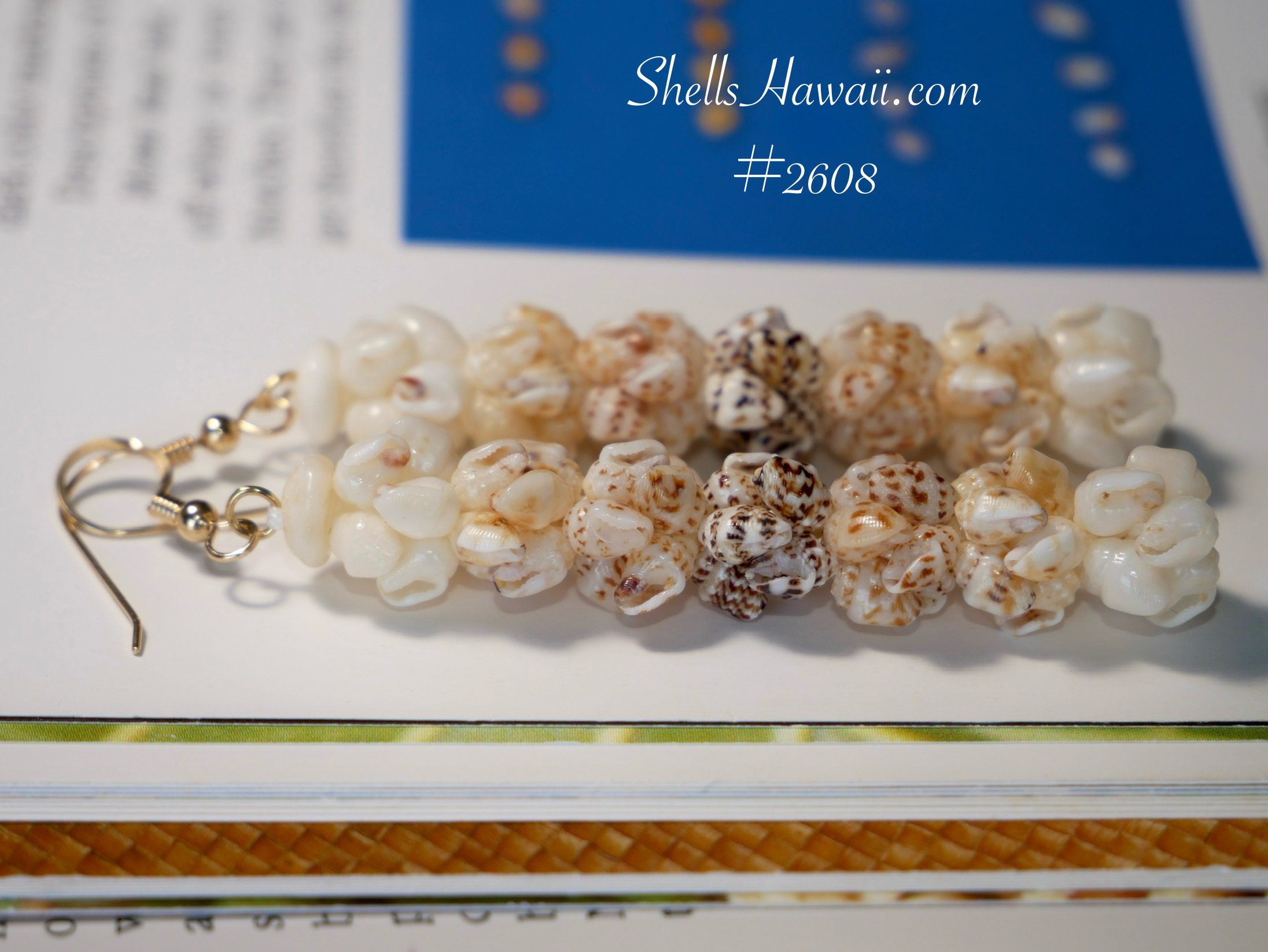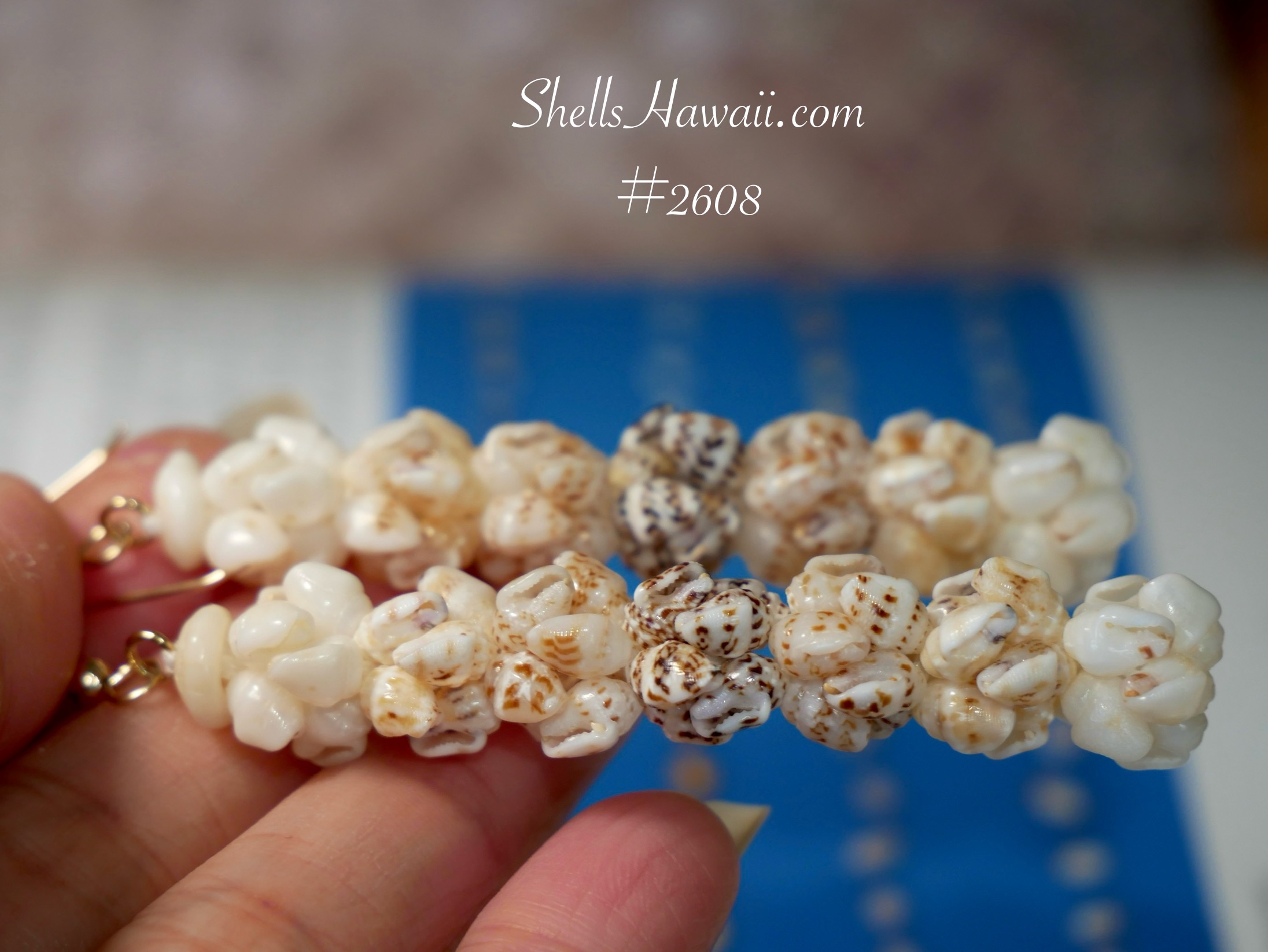 At 2.5 inches long and about 3/8" thick, these 貝殻ピアス are lightweight and elegant, designed to flow gracefully when worn. The Crown Flower style adds volume and dimension, making them stand out beautifully for both casual and formal occasions. Niʻihau shell jewelry (ハワイアンジュエリー) is rare and timeless, and this striking pair celebrates the uniqueness of spotted and solid-colored shells.
