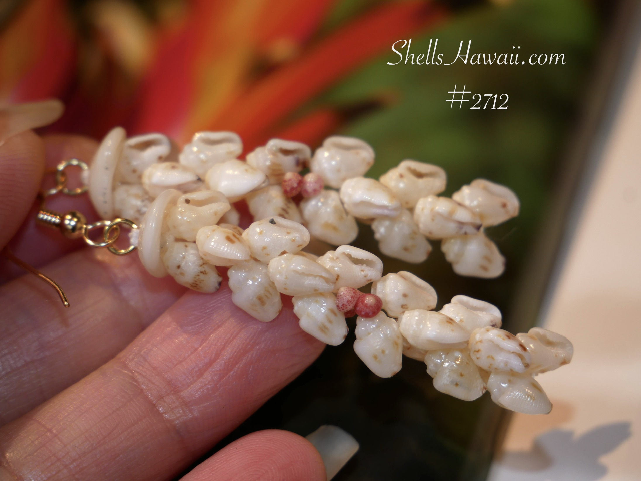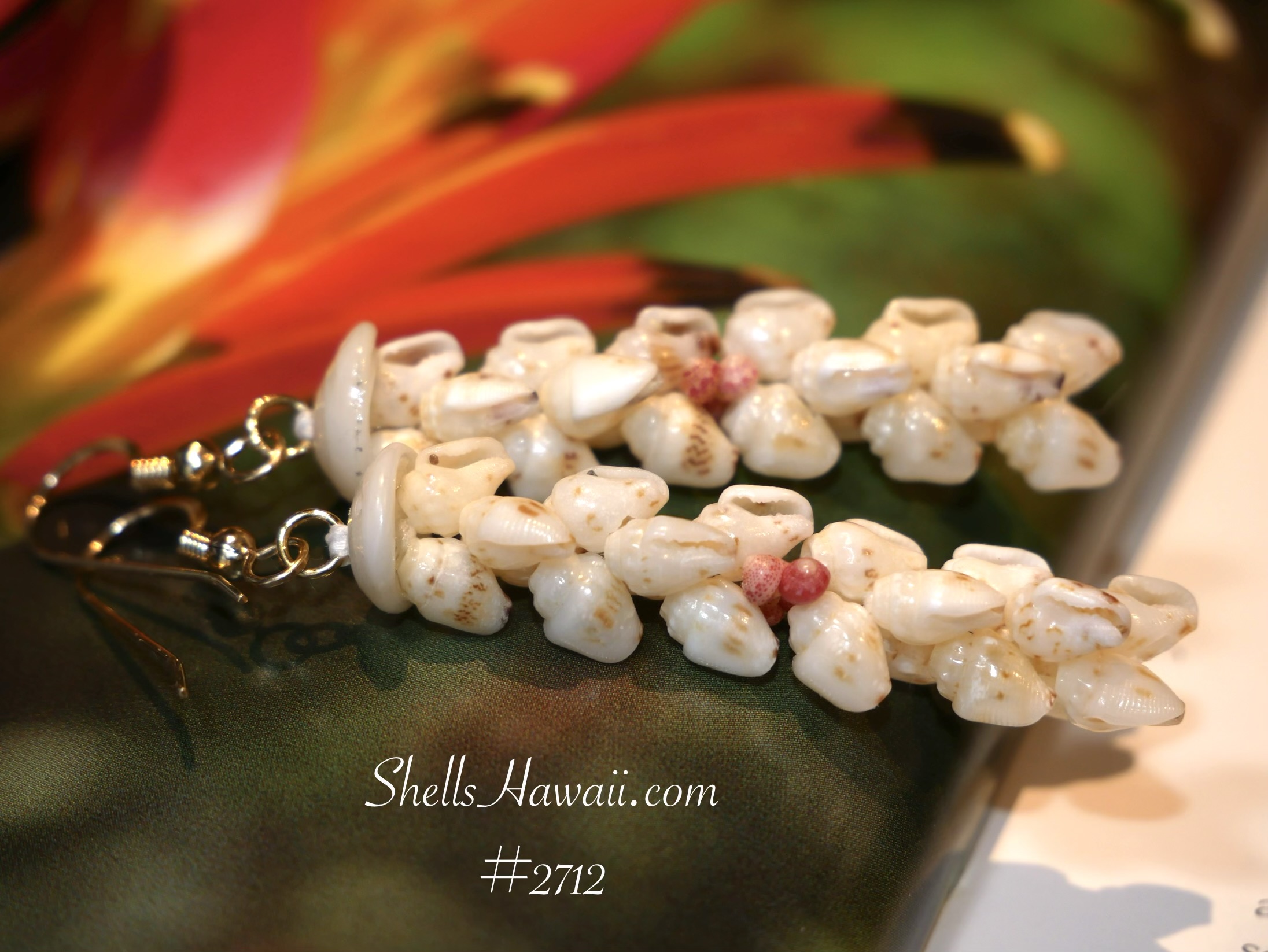 These authentic Niʻihau shell earrings are handcrafted in the graceful Kipona style, combining genuine Momi shells with delicate Kahelelani shells arranged like tiny blossoms along the strand. The flowing Kipona pattern feels airy and balanced, while the soft off-white tones paired with gentle pink accents evoke tropical flowers resting against warm island light. Light, elegant, and full of quiet beauty, these Niʻihau shell earrings are a timeless expression of Hawaiian shell jewelry made with patience and aloha.