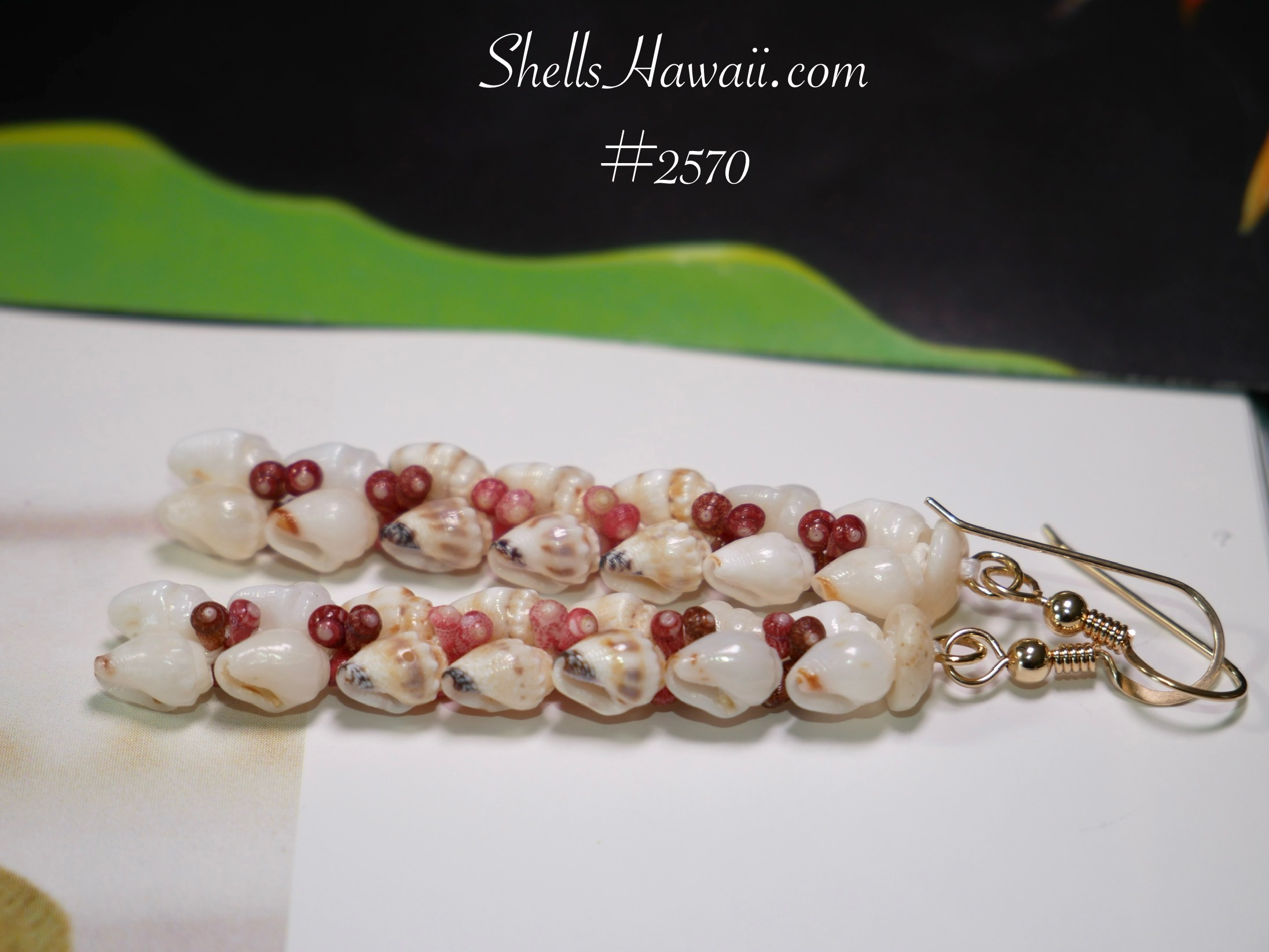 2¼″ NIʻIHAU MOMI & KAHELELANI SHELL EARRINGS – HELICONIA FLOWER STYLE