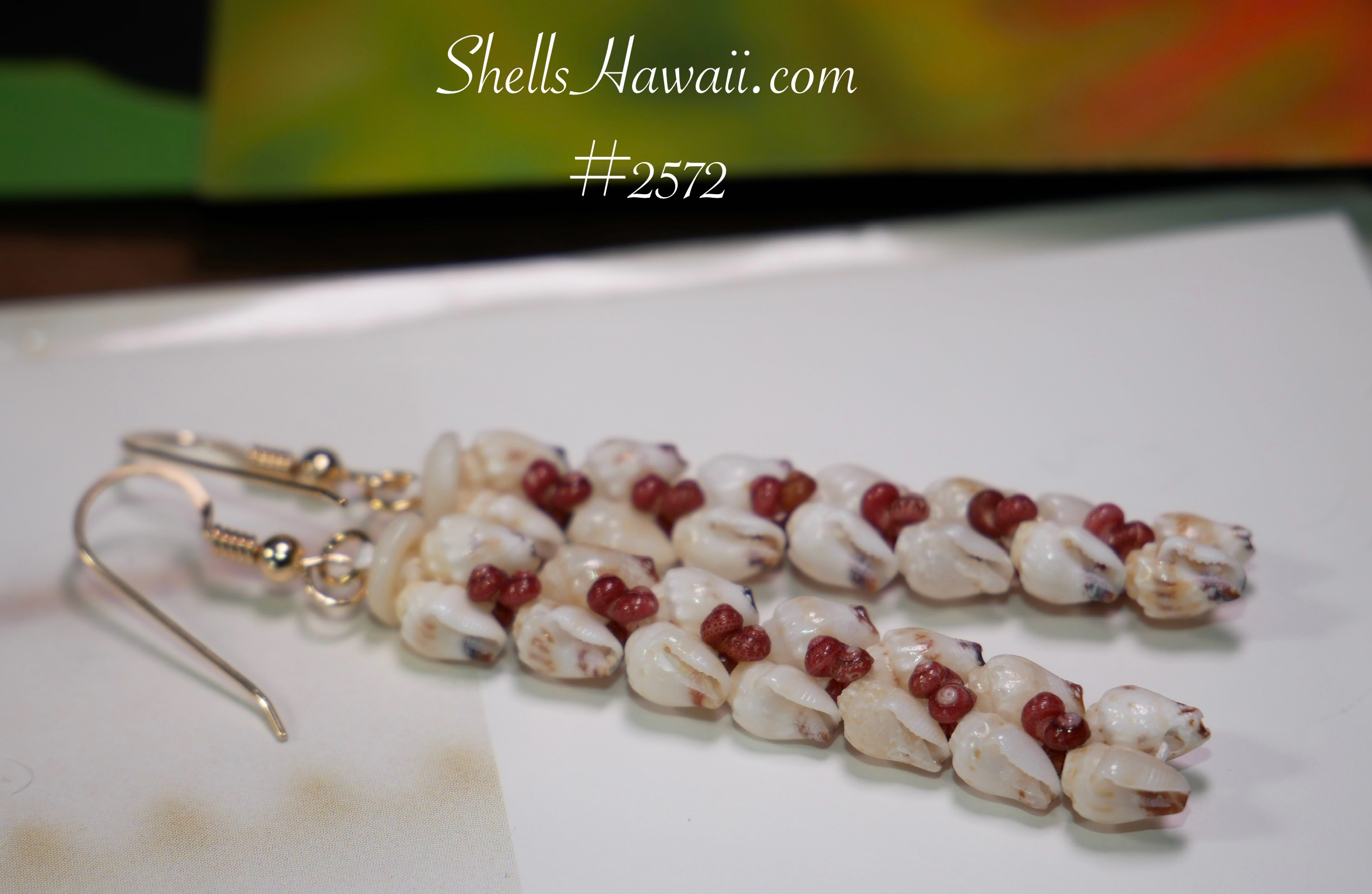 Shells: Off-white Momi with ʻUlaʻula (red/burgundy) Kahelelani accents