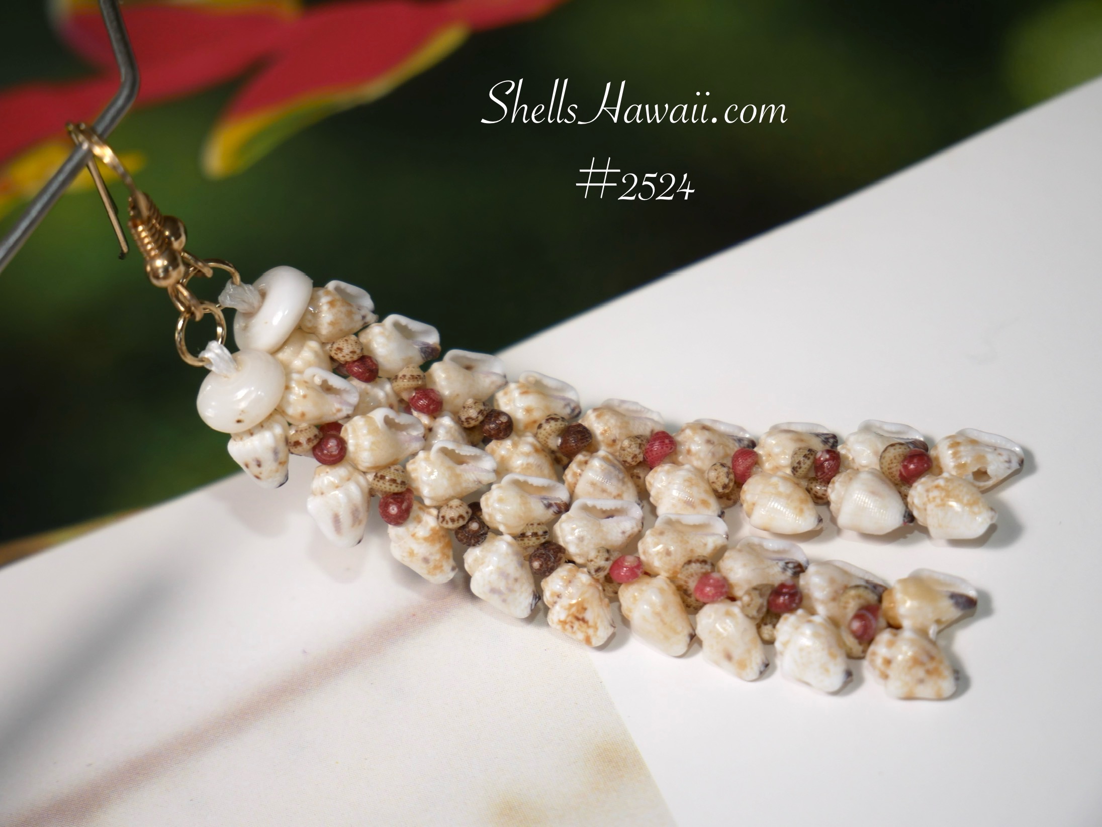 2½″ Niʻihau Momi & Kahelelani Shell Earrings – Heliconia Flower Style “Sunrise” #2524