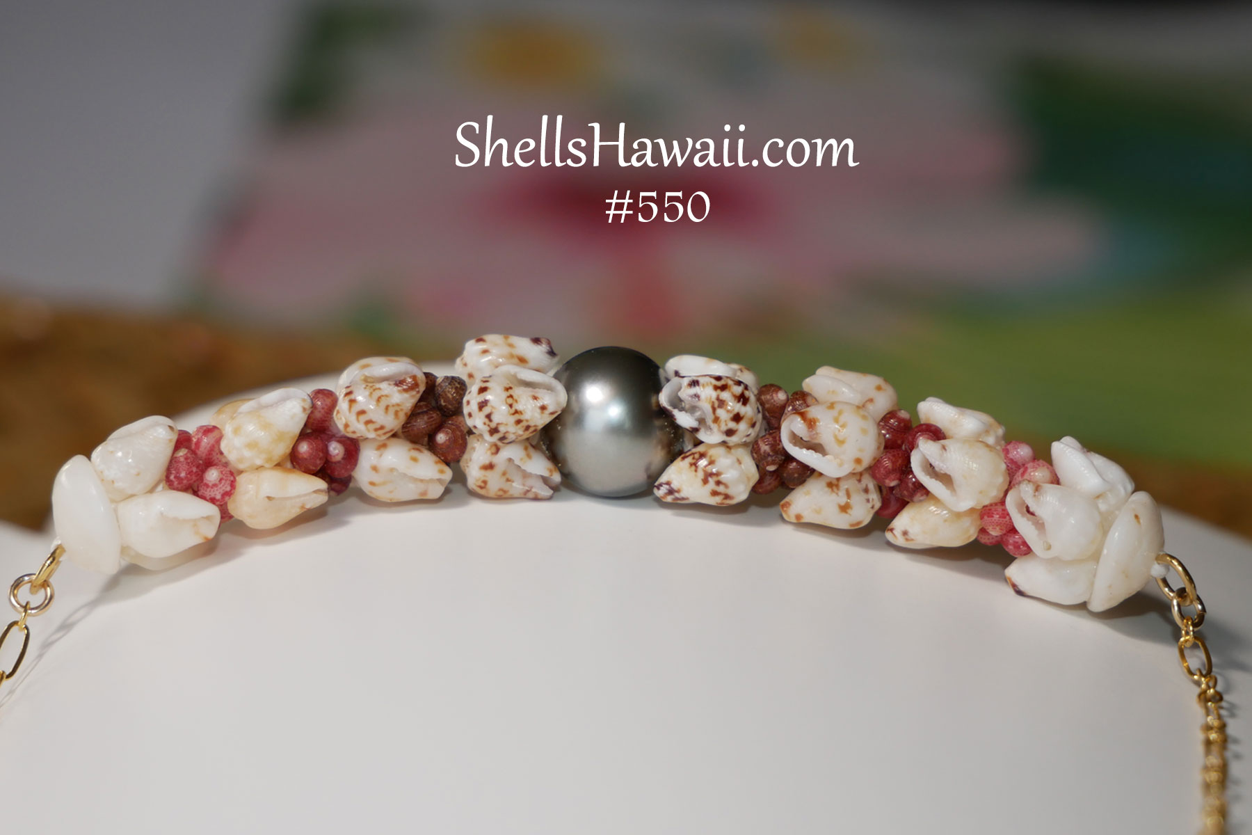 20 3/4" Kahelelani & Momi Shell Pendant with Tahitian Pearl #550