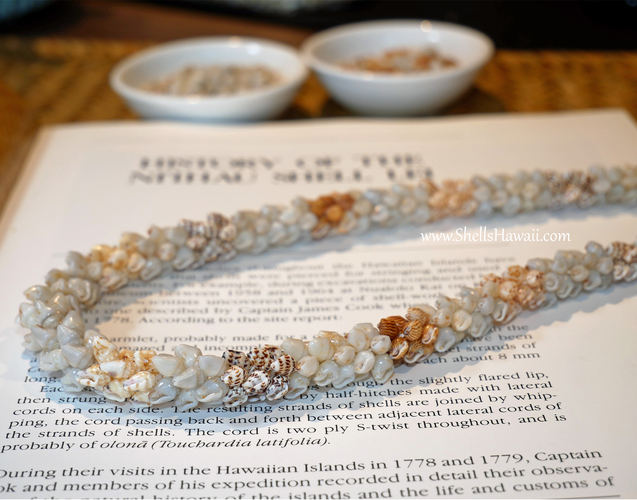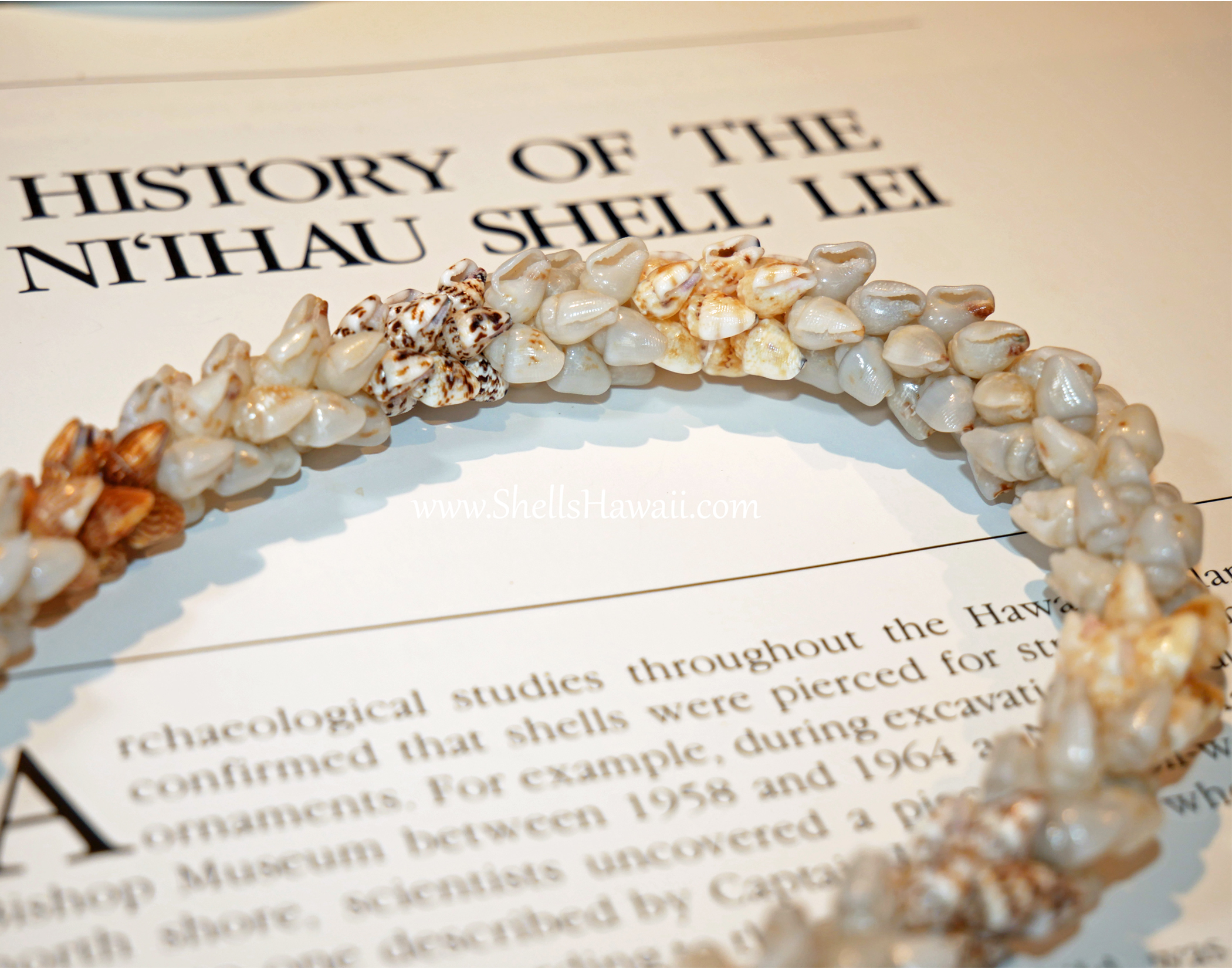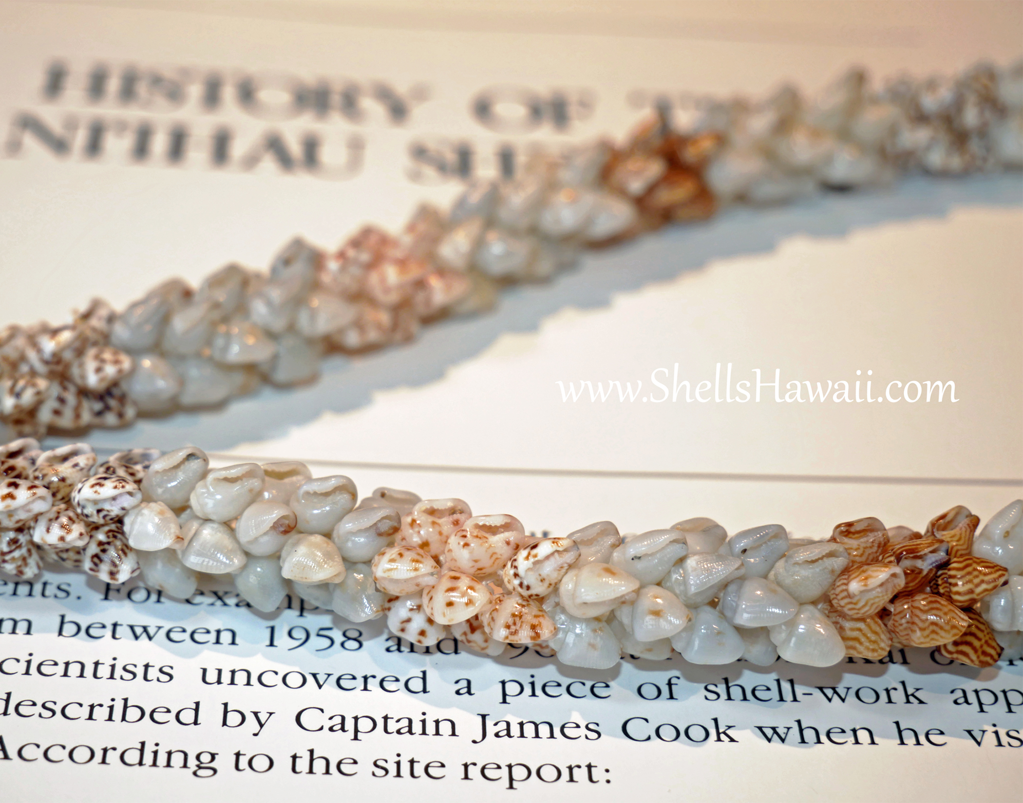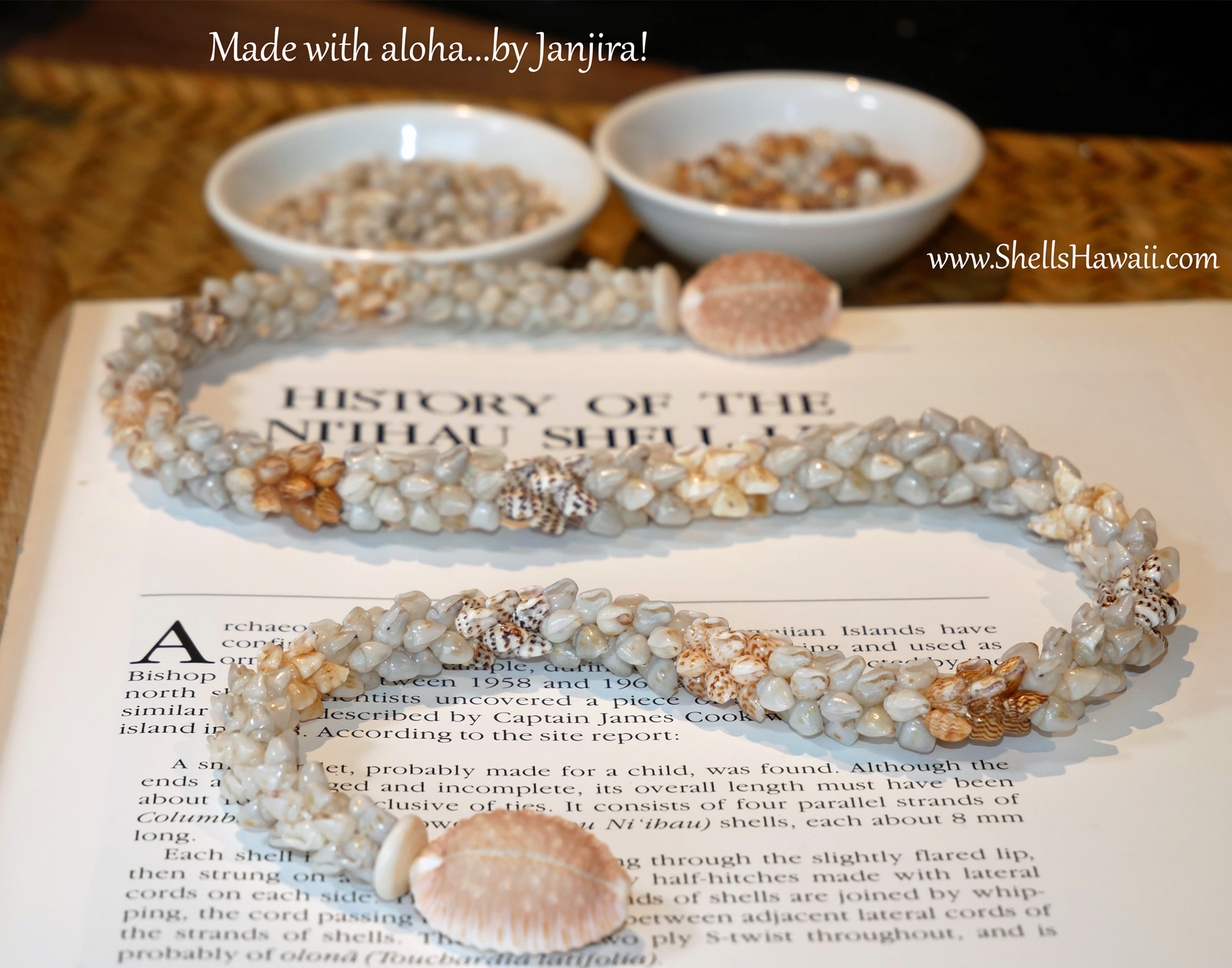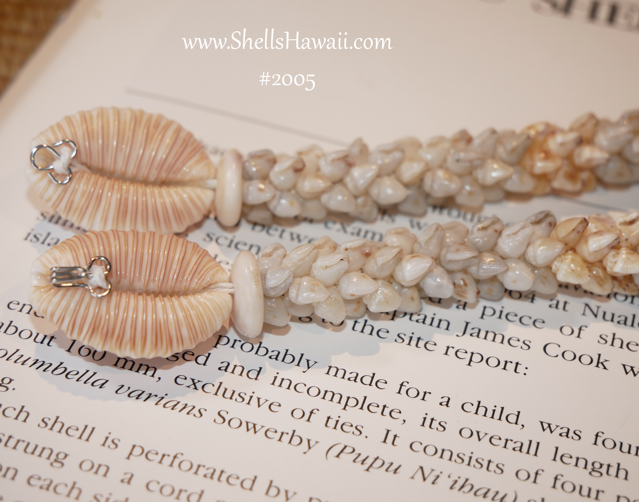 Origin of Shells: 100% Niʻihau Momi shells; cowrie clasp from Oʻahu