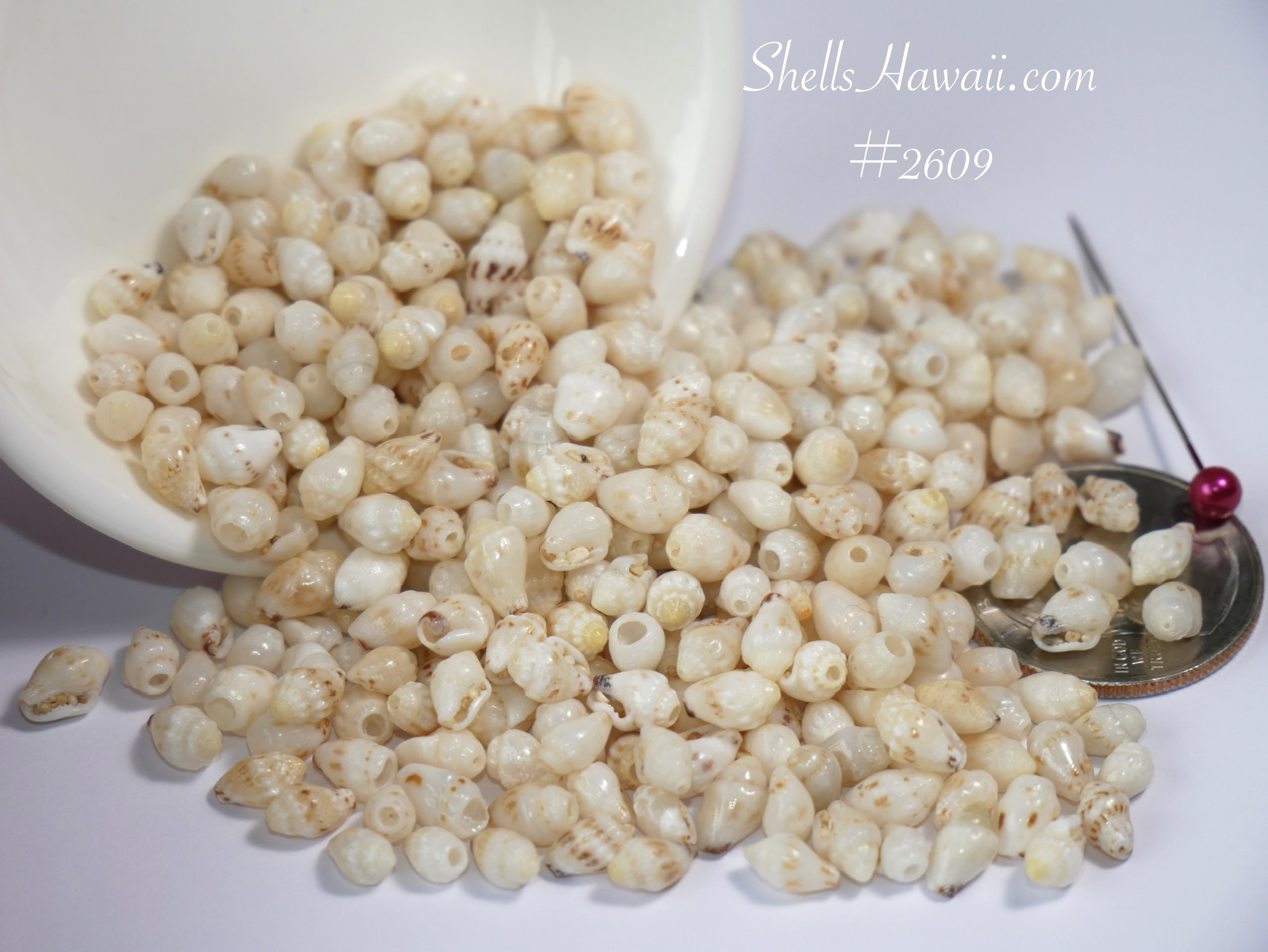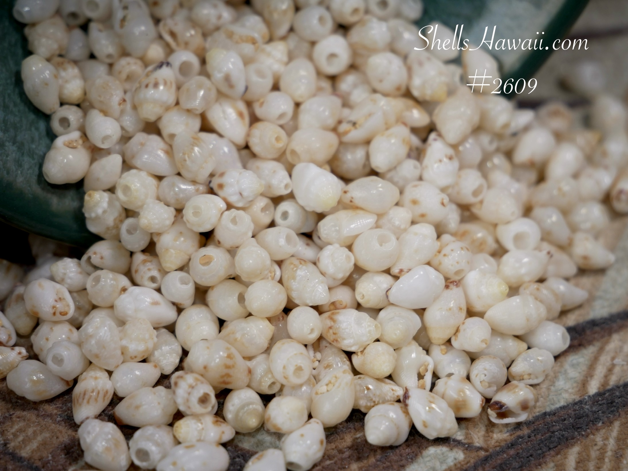 This is a genuine loose Momi shells supply for making Niʻihau shell jewelry. This set of Momi shells comes in mixed sizes with soft off-white tones, along with warm natural caramel accents throughout. These are B+ grade shells — some may have a little less luster while others still hold a nice natural shine — and they are good quality shells for creating Hawaiian jewelry such as earrings, bracelets, or lei.