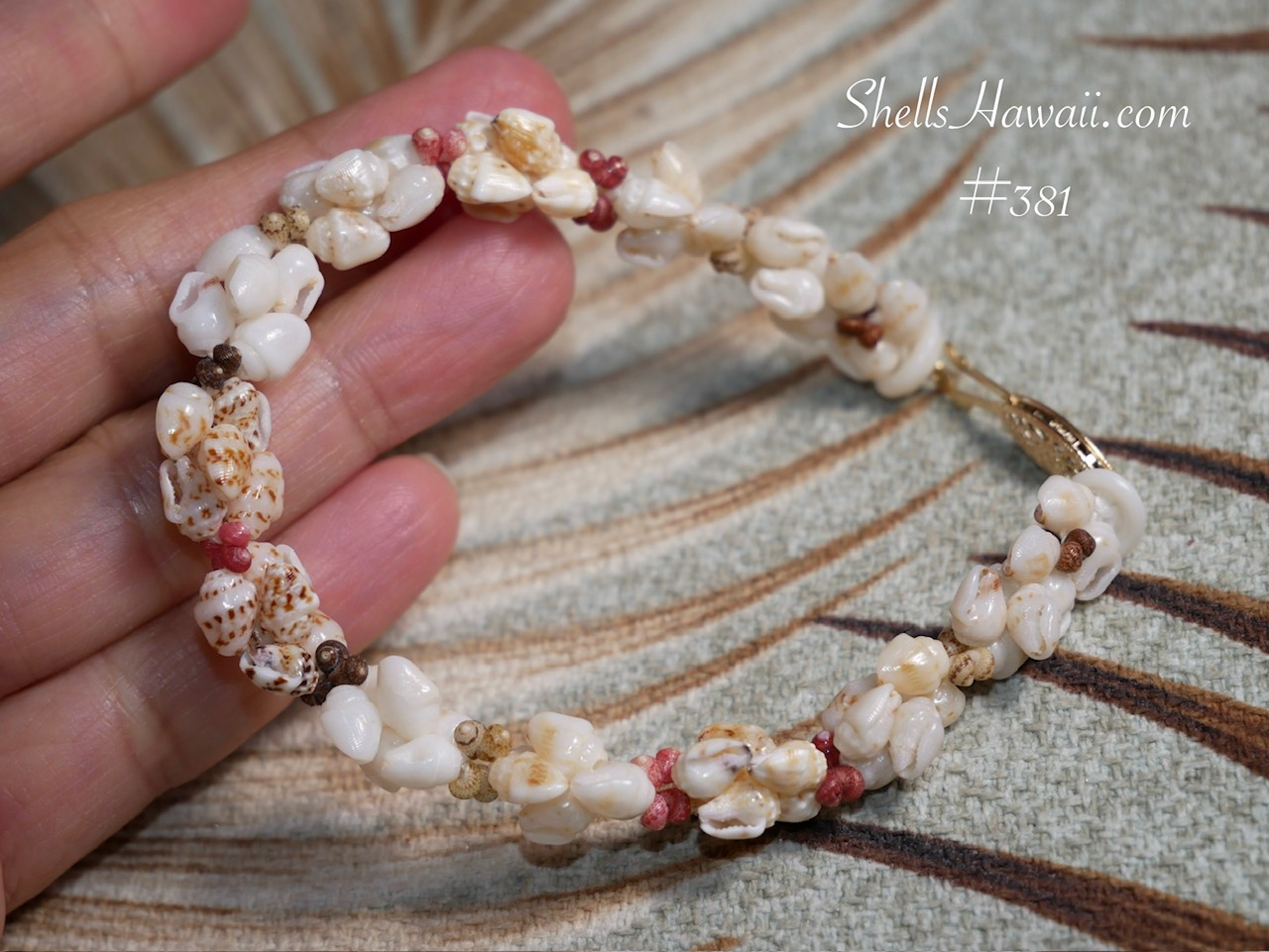 Hawaiian shell bracelet Kipona style with genuine Momi and Kahelelani shells, forming a soft and natural design. Creamy off white Momi shells are paired with natural Kahelelani accents in red, brown, and soft earthy tones, creating a balanced piece that feels both classic and easy to wear.
