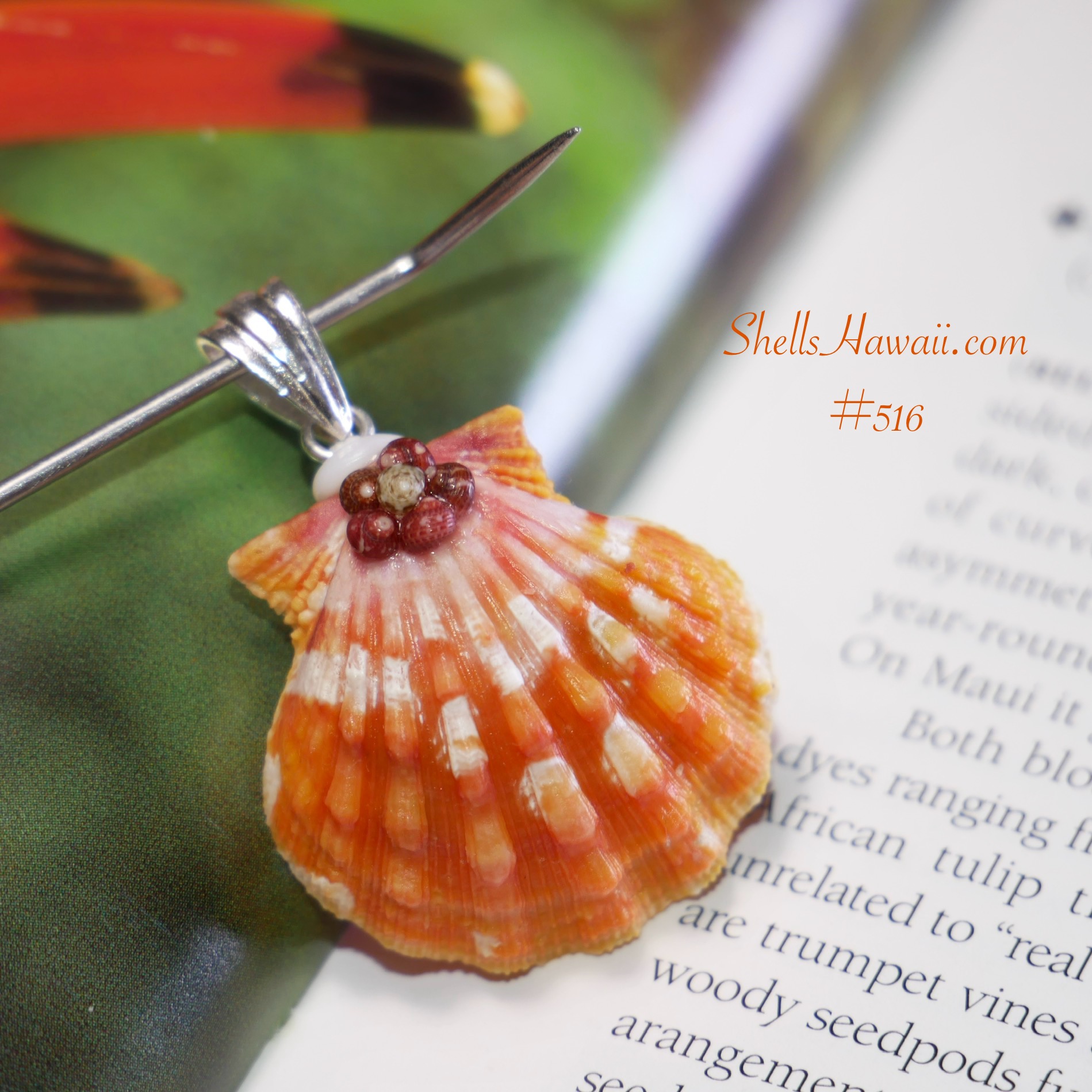 Orange and Yellow Hawaiian Sunrise Shell Pendant with Authentic Niʻihau Shells #516